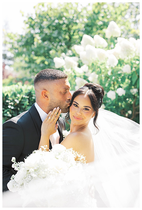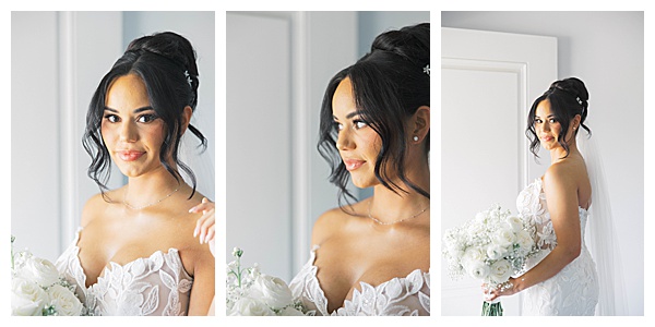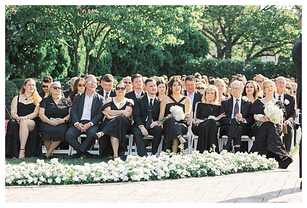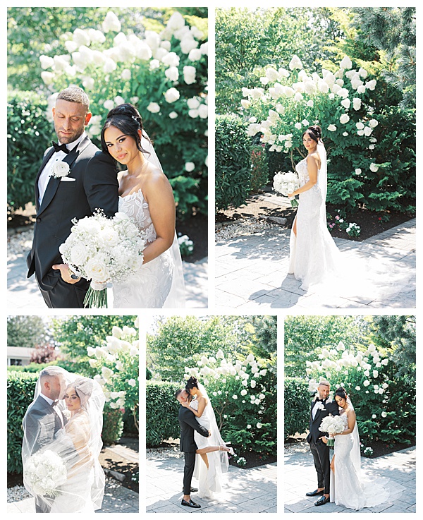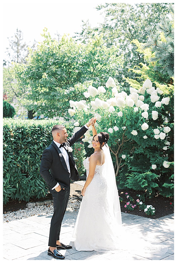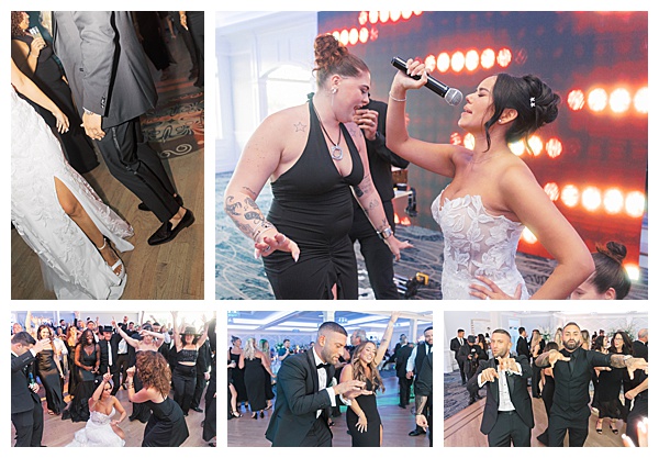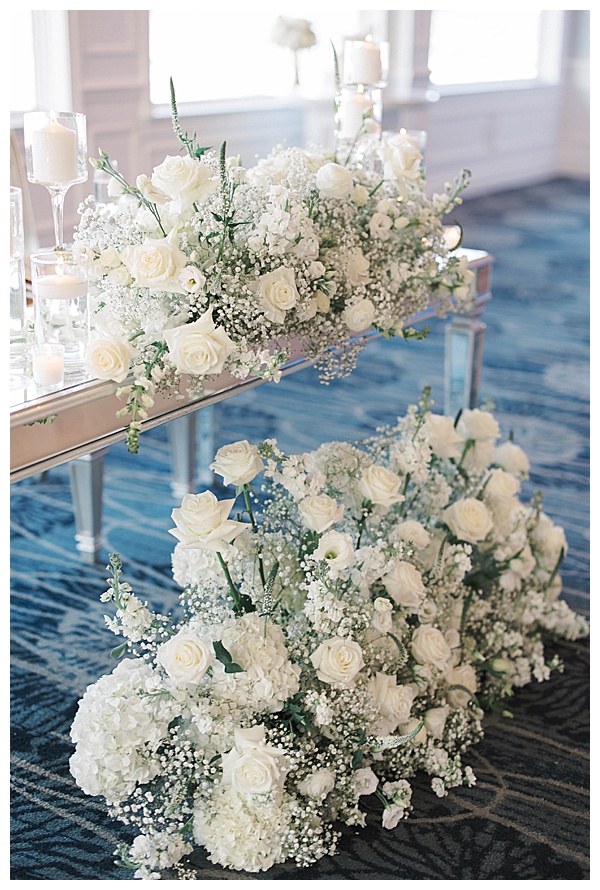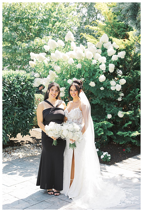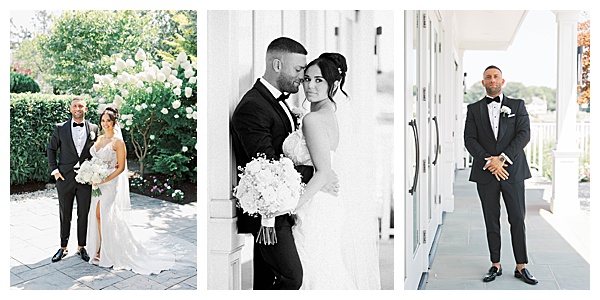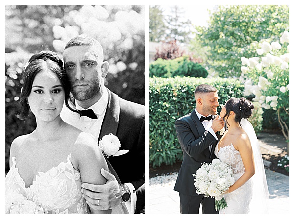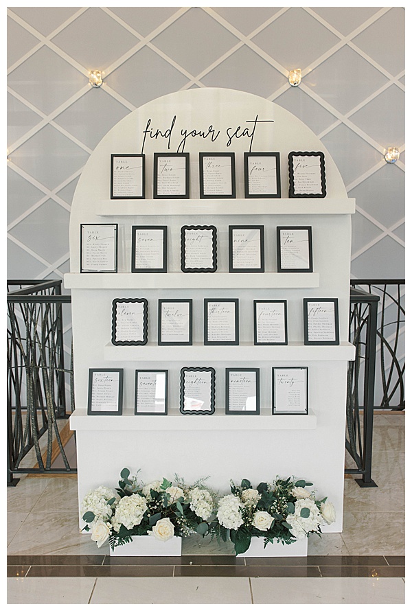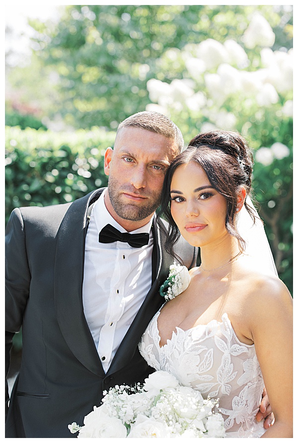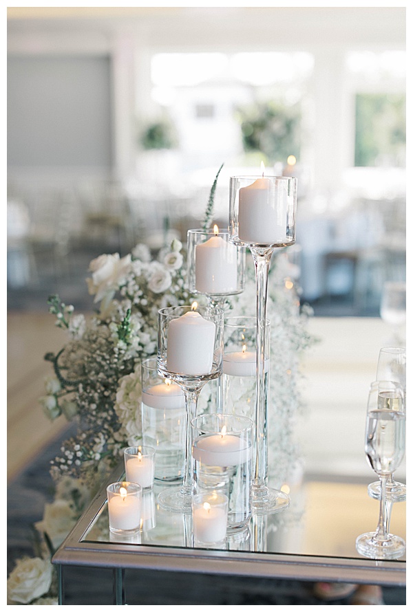 With the sun shining high and the river sparkling in the background, Crystal Point Yacht Club created the perfect coastal setting for their celebration. Alana chose a timeless look, complemented by a small bridal party dressed in sleek black bridesmaid dresses, while Rob and his groomsmen wore sharp black tuxedos that added to the clean, classic feel of the day. The neutral color palette fit beautifully with the waterfront scenery and gave everything a modern, elegant edge.