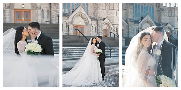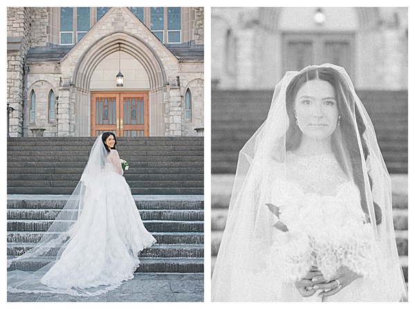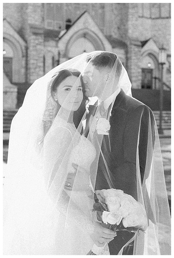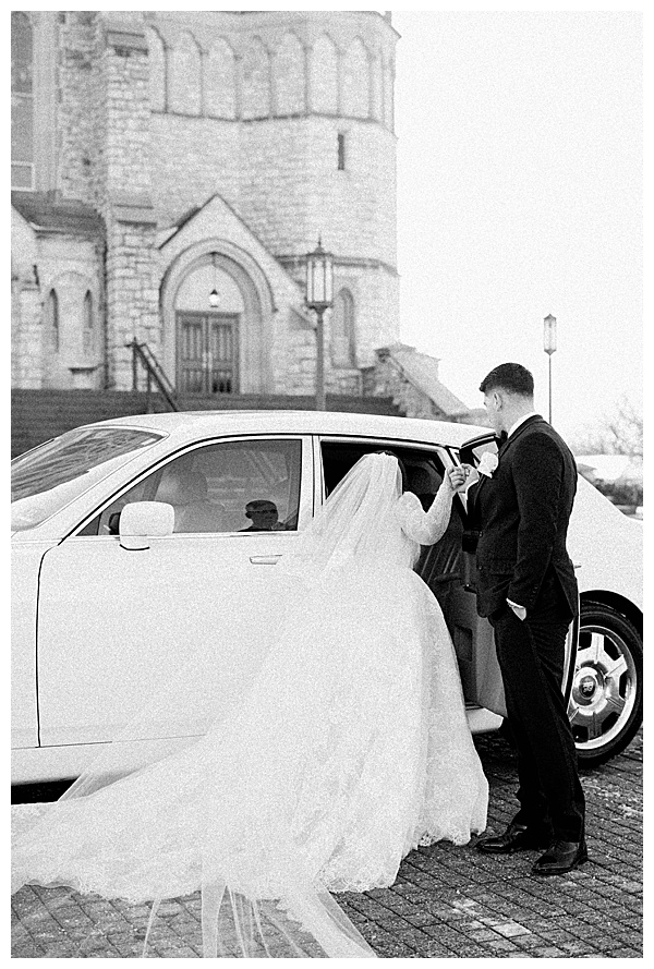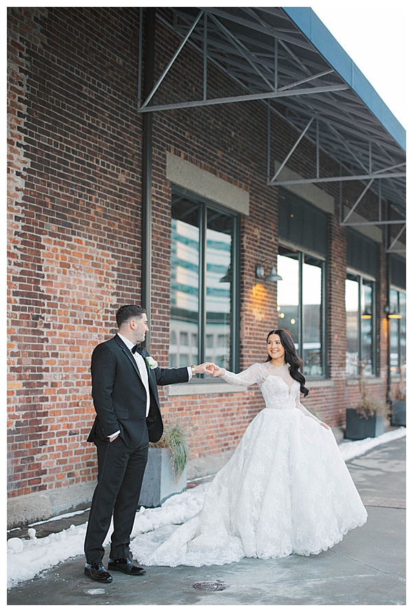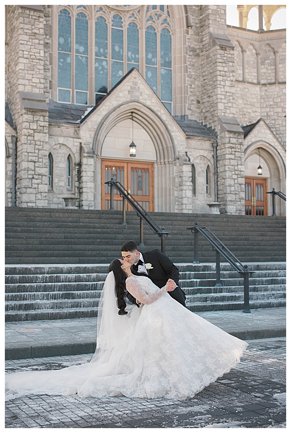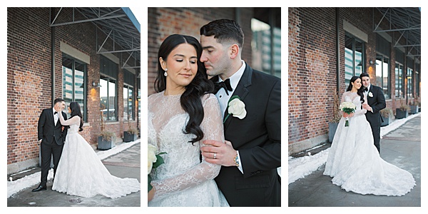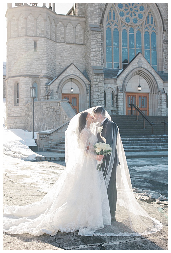 Stephanie herself was breathtaking. Her lace gown was intricate and elegant, and her dramatic veil added a touch of romance that perfectly complemented the snowy landscape. Outdoor portraits against the icy backdrop turned into some of the dreamiest, most cinematic images of the day, proving that cold weather can make for the most magical photography.